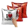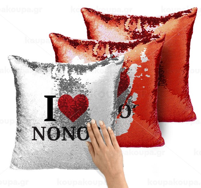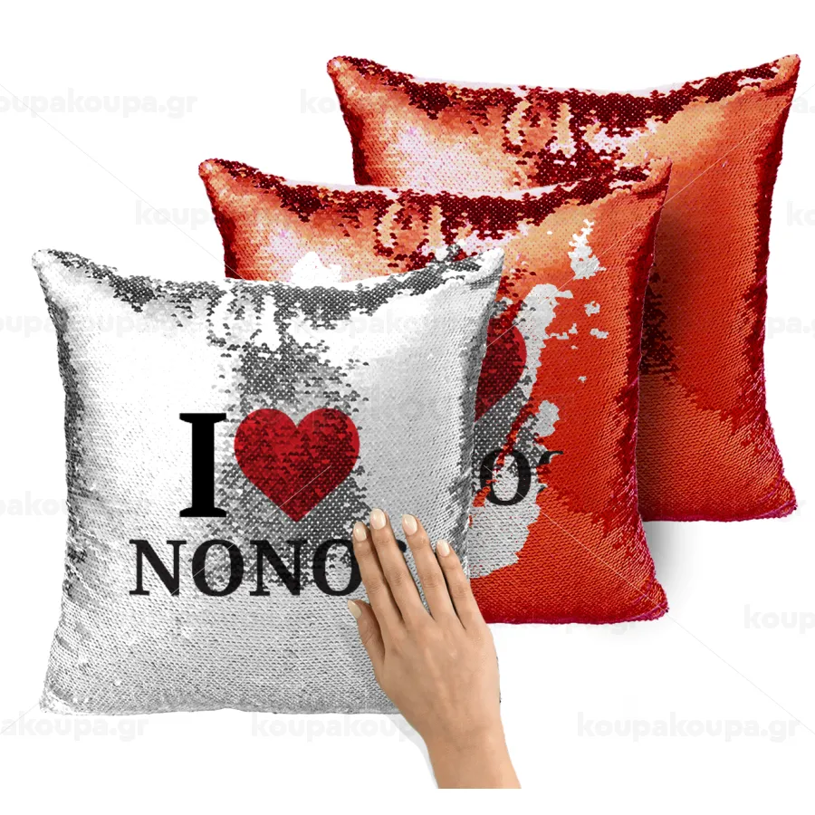 I Love ΝΟΝΟΣ, Μαξιλάρι καναπέ Μαγικό Κόκκινο με πούλιες 40x40cm περιέχεται το γέμισμα