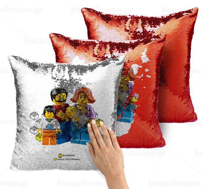 Τύπου Lego family, Μαξιλάρι καναπέ Μαγικό Κόκκινο με πούλιες 40x40cm περιέχεται το γέμισμα