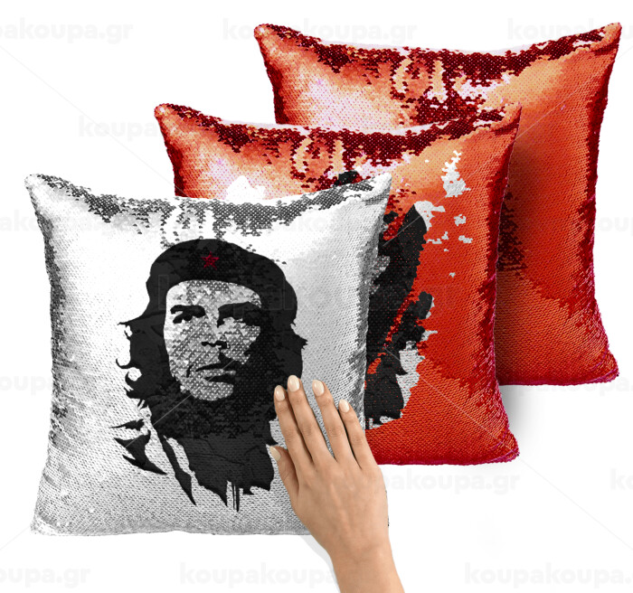 Che Guevara, Μαξιλάρι καναπέ Μαγικό Κόκκινο με πούλιες 40x40cm περιέχεται το γέμισμα