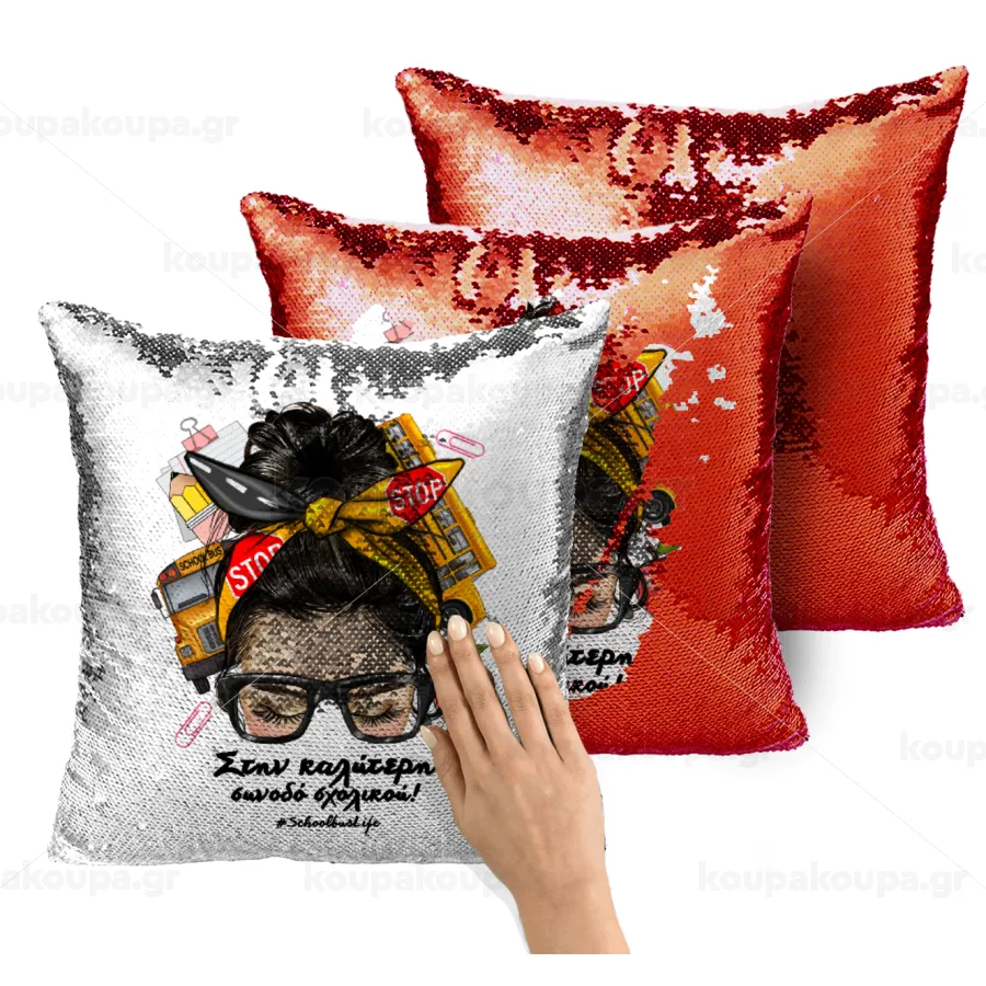Στην καλύτερη συνοδό σχολικού!, Μαξιλάρι καναπέ Μαγικό Κόκκινο με πούλιες 40x40cm περιέχεται το γέμισμα