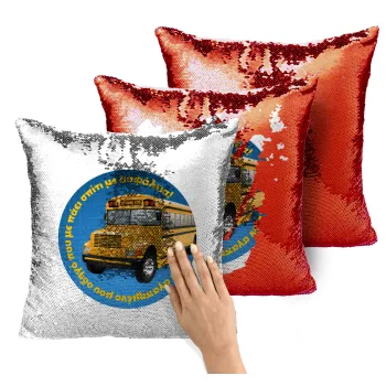 Στον αγαπημένο μου οδηγό σχολικού!, Μαξιλάρι καναπέ Μαγικό Κόκκινο με πούλιες 40x40cm περιέχεται το γέμισμα
