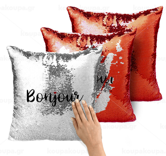 Bonjour, Μαξιλάρι καναπέ Μαγικό Κόκκινο με πούλιες 40x40cm περιέχεται το γέμισμα