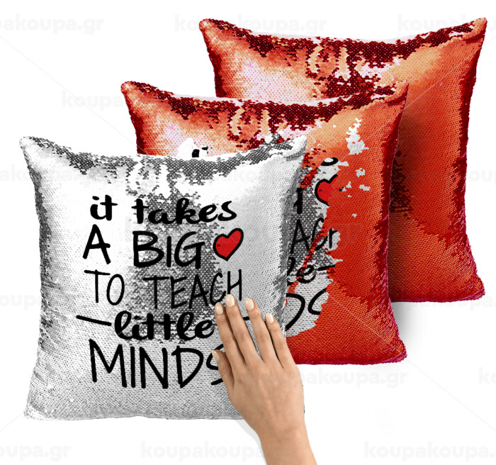 It takes big heart to teach little minds, Μαξιλάρι καναπέ Μαγικό Κόκκινο με πούλιες 40x40cm περιέχεται το γέμισμα