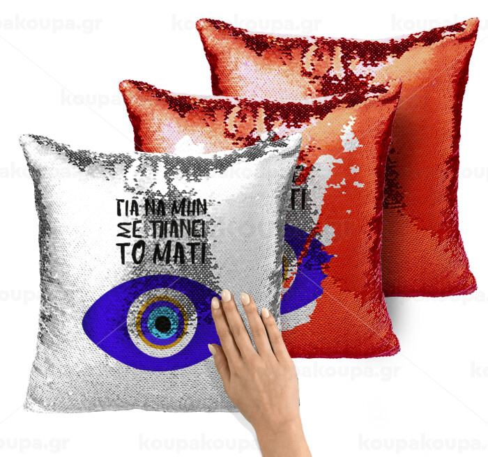 Για να μην σε πιάνει το μάτι, Μαξιλάρι καναπέ Μαγικό Κόκκινο με πούλιες 40x40cm περιέχεται το γέμισμα
