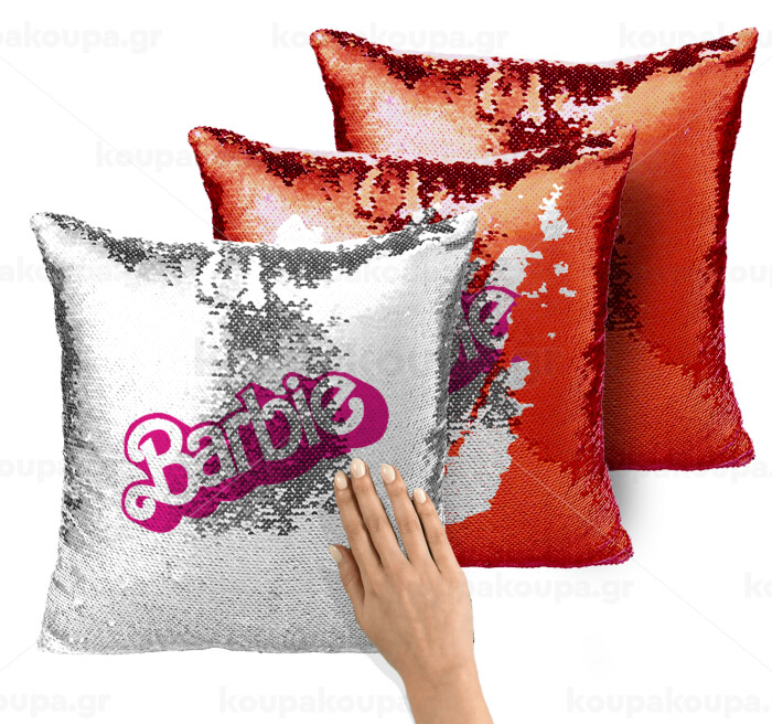 Barbie, Μαξιλάρι καναπέ Μαγικό Κόκκινο με πούλιες 40x40cm περιέχεται το γέμισμα