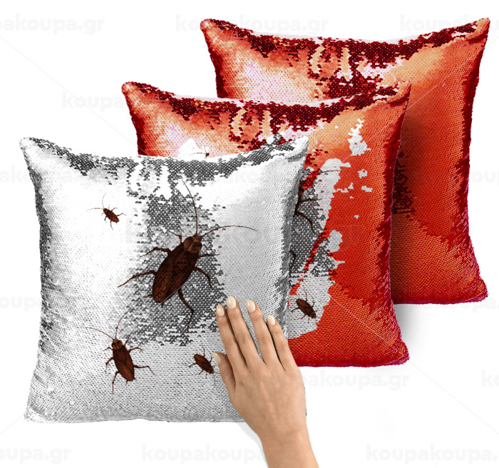 Blattodea, Μαξιλάρι καναπέ Μαγικό Κόκκινο με πούλιες 40x40cm περιέχεται το γέμισμα