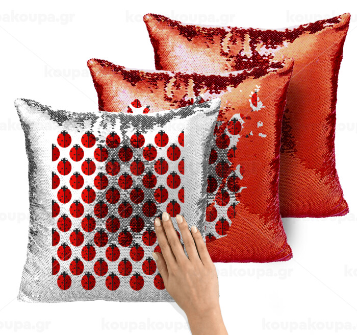 Coccinella, Μαξιλάρι καναπέ Μαγικό Κόκκινο με πούλιες 40x40cm περιέχεται το γέμισμα