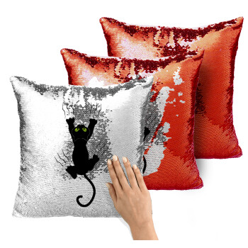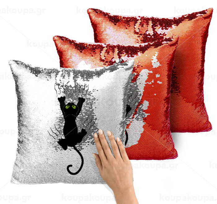 cat grabbing, Μαξιλάρι καναπέ Μαγικό Κόκκινο με πούλιες 40x40cm περιέχεται το γέμισμα