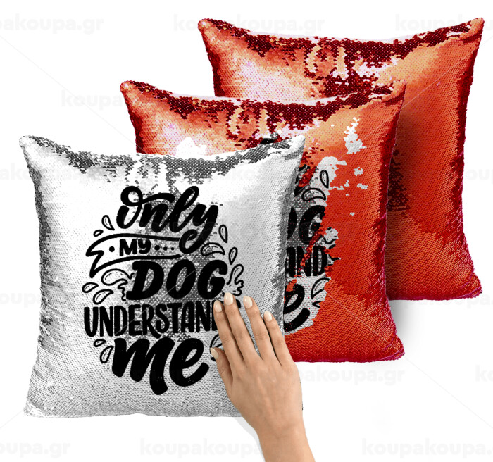 Only my DOG, understands me, Μαξιλάρι καναπέ Μαγικό Κόκκινο με πούλιες 40x40cm περιέχεται το γέμισμα