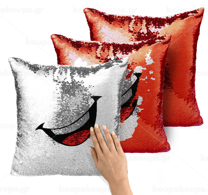 Φατσούλα γελάω!!!, Μαξιλάρι καναπέ Μαγικό Κόκκινο με πούλιες 40x40cm περιέχεται το γέμισμα