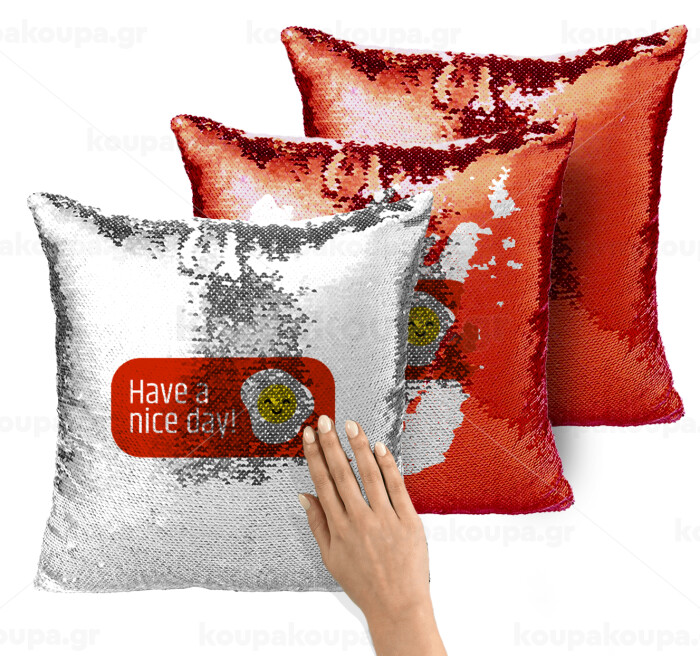 Have a nice day Emoji, Μαξιλάρι καναπέ Μαγικό Κόκκινο με πούλιες 40x40cm περιέχεται το γέμισμα