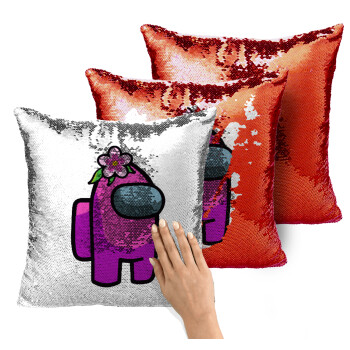 Among US girl, Μαξιλάρι καναπέ Μαγικό Κόκκινο με πούλιες 40x40cm περιέχεται το γέμισμα