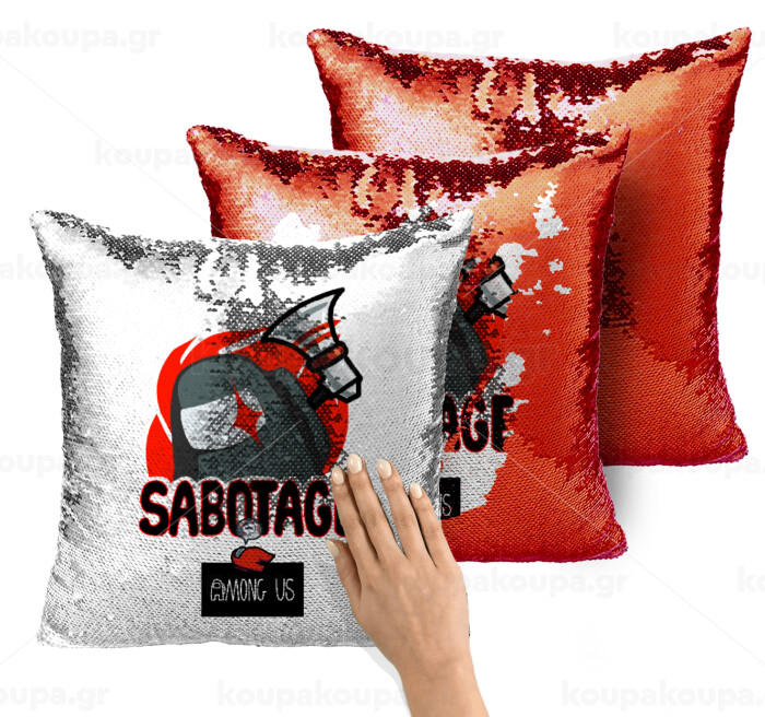 Among US Sabotage, Μαξιλάρι καναπέ Μαγικό Κόκκινο με πούλιες 40x40cm περιέχεται το γέμισμα