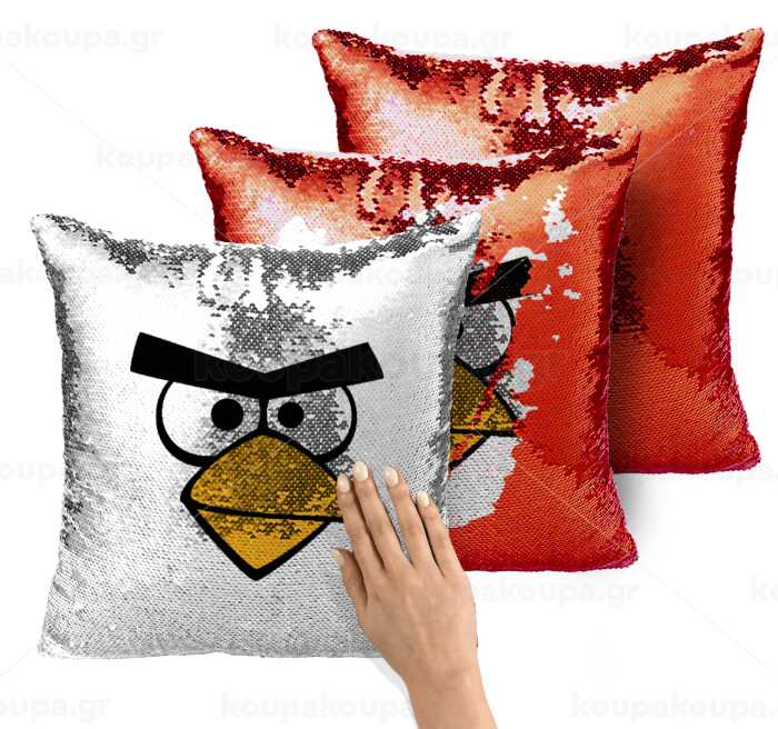 Angry birds eyes, Μαξιλάρι καναπέ Μαγικό Κόκκινο με πούλιες 40x40cm περιέχεται το γέμισμα