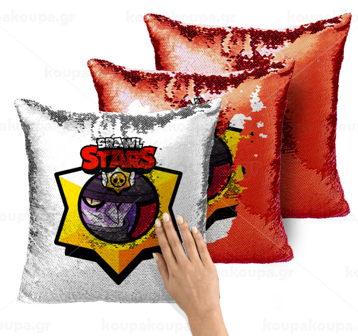 Brawl Stars Mortis, Μαξιλάρι καναπέ Μαγικό Κόκκινο με πούλιες 40x40cm περιέχεται το γέμισμα