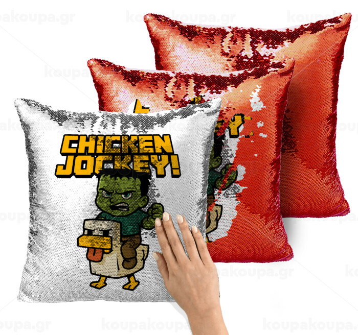 Chicken Jockey, Μαξιλάρι καναπέ Μαγικό Κόκκινο με πούλιες 40x40cm περιέχεται το γέμισμα