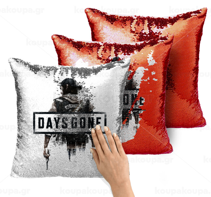 Day's Gone, Μαξιλάρι καναπέ Μαγικό Κόκκινο με πούλιες 40x40cm περιέχεται το γέμισμα