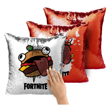 Fortnite Durr Burger, Μαξιλάρι καναπέ Μαγικό Κόκκινο με πούλιες 40x40cm περιέχεται το γέμισμα