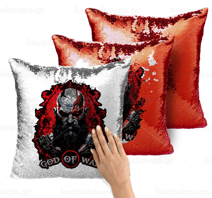 God of war, Μαξιλάρι καναπέ Μαγικό Κόκκινο με πούλιες 40x40cm περιέχεται το γέμισμα