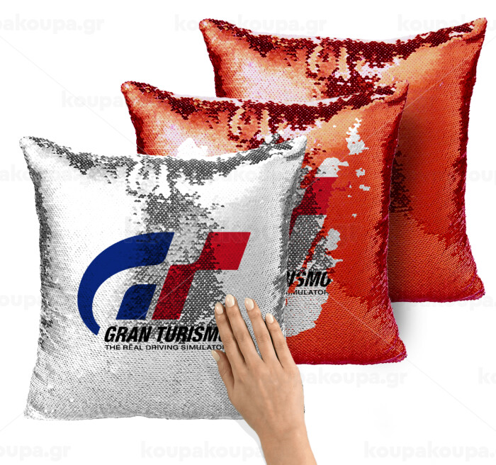 gran turismo, Μαξιλάρι καναπέ Μαγικό Κόκκινο με πούλιες 40x40cm περιέχεται το γέμισμα