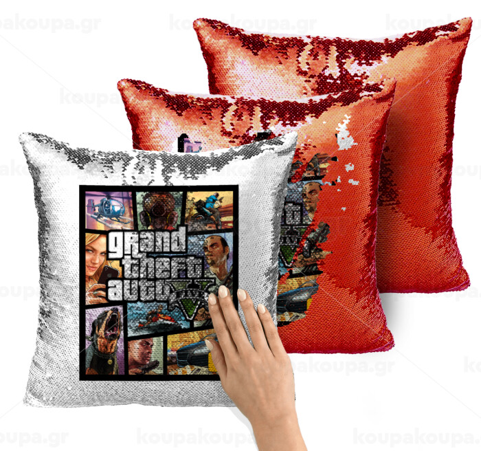 GTA V, Μαξιλάρι καναπέ Μαγικό Κόκκινο με πούλιες 40x40cm περιέχεται το γέμισμα
