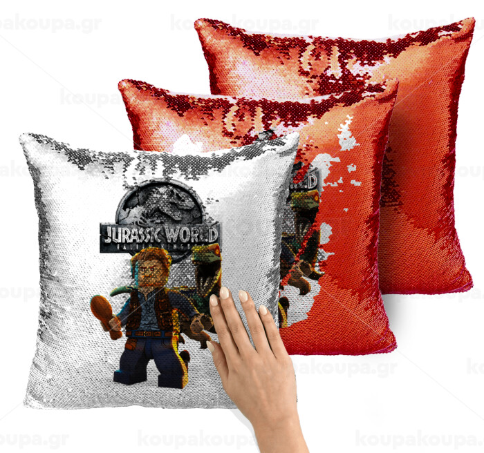 Jurassic world, Μαξιλάρι καναπέ Μαγικό Κόκκινο με πούλιες 40x40cm περιέχεται το γέμισμα