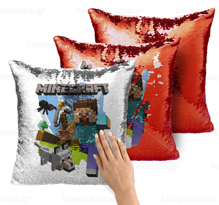 Minecraft Alex, Μαξιλάρι καναπέ Μαγικό Κόκκινο με πούλιες 40x40cm περιέχεται το γέμισμα