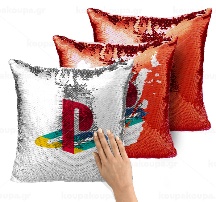 Playstation, Μαξιλάρι καναπέ Μαγικό Κόκκινο με πούλιες 40x40cm περιέχεται το γέμισμα
