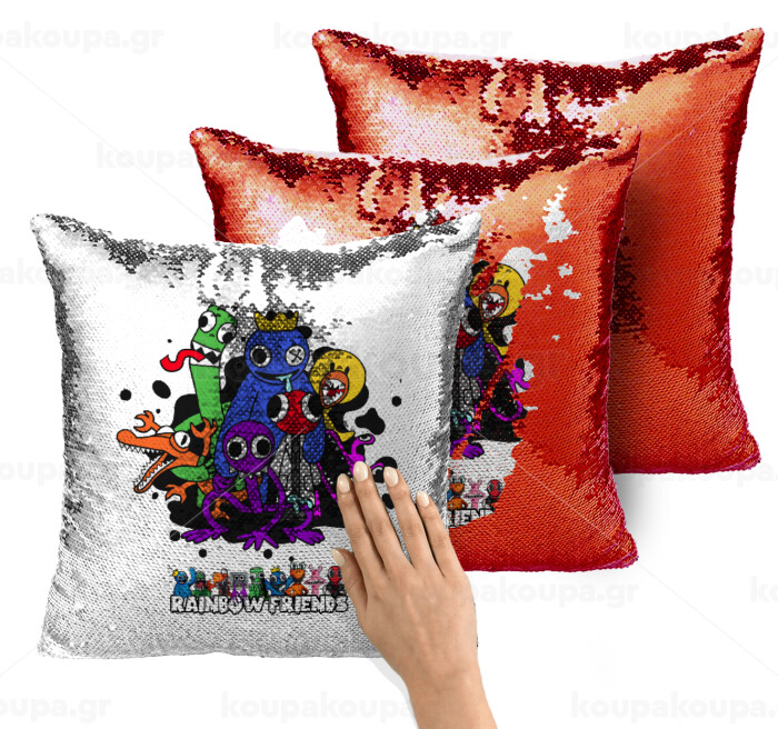 Rainbow friends, Μαξιλάρι καναπέ Μαγικό Κόκκινο με πούλιες 40x40cm περιέχεται το γέμισμα
