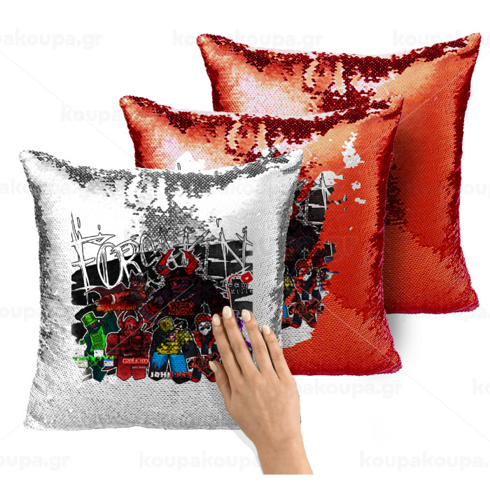 Roblox Forsaken, Μαξιλάρι καναπέ Μαγικό Κόκκινο με πούλιες 40x40cm περιέχεται το γέμισμα