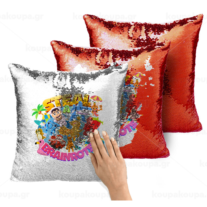 Roblox Steal a Brainrot, Μαξιλάρι καναπέ Μαγικό Κόκκινο με πούλιες 40x40cm περιέχεται το γέμισμα