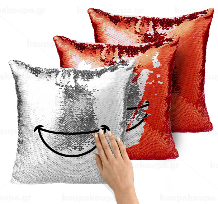 Big Smile, Μαξιλάρι καναπέ Μαγικό Κόκκινο με πούλιες 40x40cm περιέχεται το γέμισμα