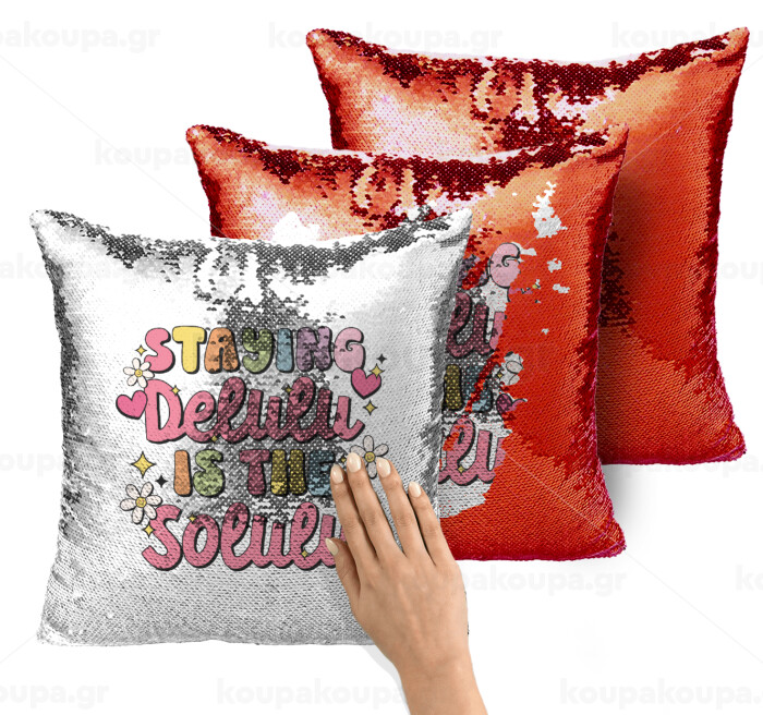 Delulu, Μαξιλάρι καναπέ Μαγικό Κόκκινο με πούλιες 40x40cm περιέχεται το γέμισμα