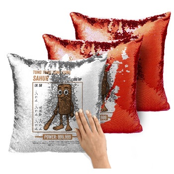 Tung Tung Tung Sahur, Μαξιλάρι καναπέ Μαγικό Κόκκινο με πούλιες 40x40cm περιέχεται το γέμισμα