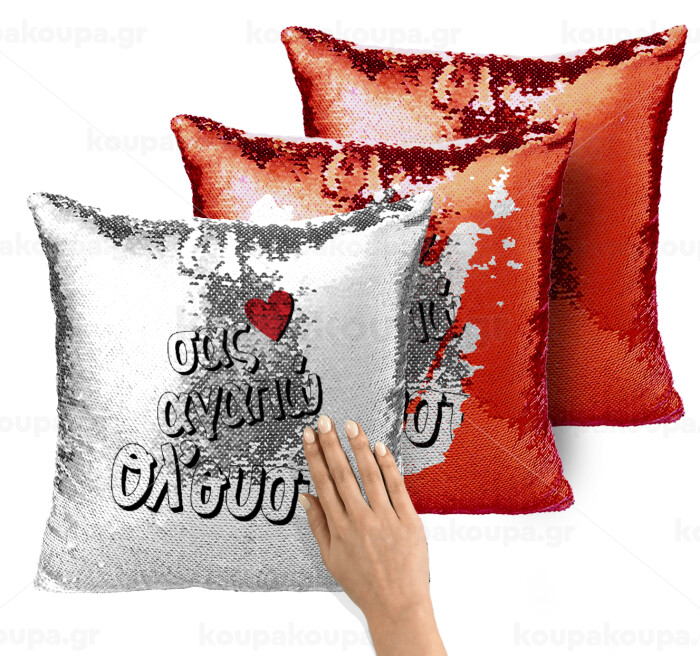 Σας αγαπώ όλ'ουστ!, Μαξιλάρι καναπέ Μαγικό Κόκκινο με πούλιες 40x40cm περιέχεται το γέμισμα