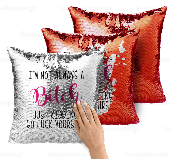 I'm not always a bitch, just kidding go f..k yourself , Μαξιλάρι καναπέ Μαγικό Κόκκινο με πούλιες 40x40cm περιέχεται το γέμισμα