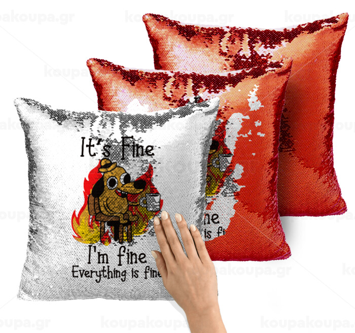 It's Fine I'm Fine Everything Is Fine, Μαξιλάρι καναπέ Μαγικό Κόκκινο με πούλιες 40x40cm περιέχεται το γέμισμα
