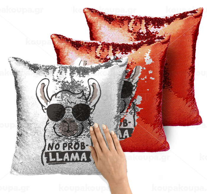 No Prob Llama, Μαξιλάρι καναπέ Μαγικό Κόκκινο με πούλιες 40x40cm περιέχεται το γέμισμα
