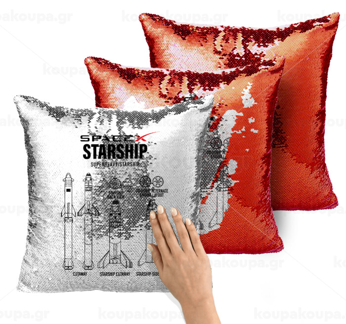Space X, Μαξιλάρι καναπέ Μαγικό Κόκκινο με πούλιες 40x40cm περιέχεται το γέμισμα