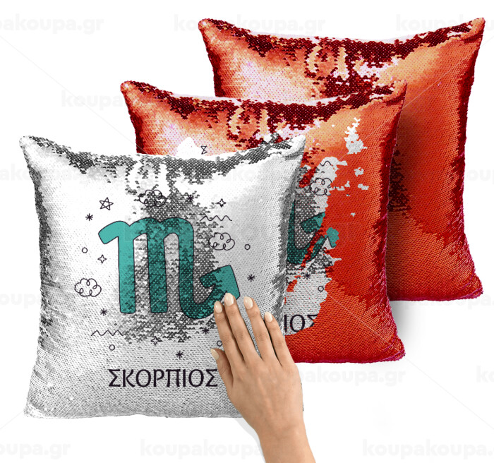 Ζώδια Σκορπιός, Μαξιλάρι καναπέ Μαγικό Κόκκινο με πούλιες 40x40cm περιέχεται το γέμισμα