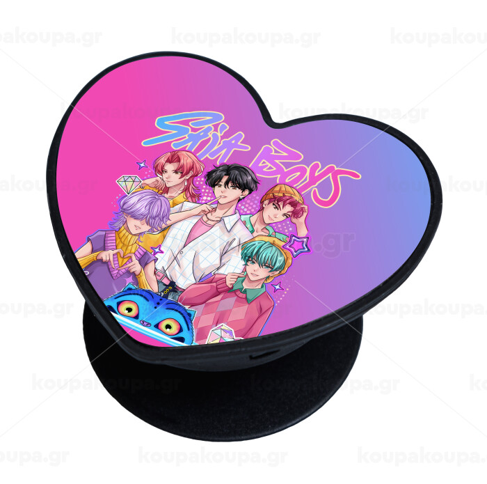 Huntrix Saja Boys, Phone Holders Stand καρδιά Μαύρο Βάση Στήριξης Κινητού στο Χέρι