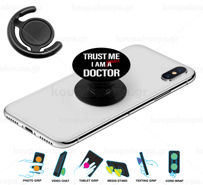 Trust me, i am (almost) Doctor, Phone Holders Stand Black Hand-held Mobile Phone Holder