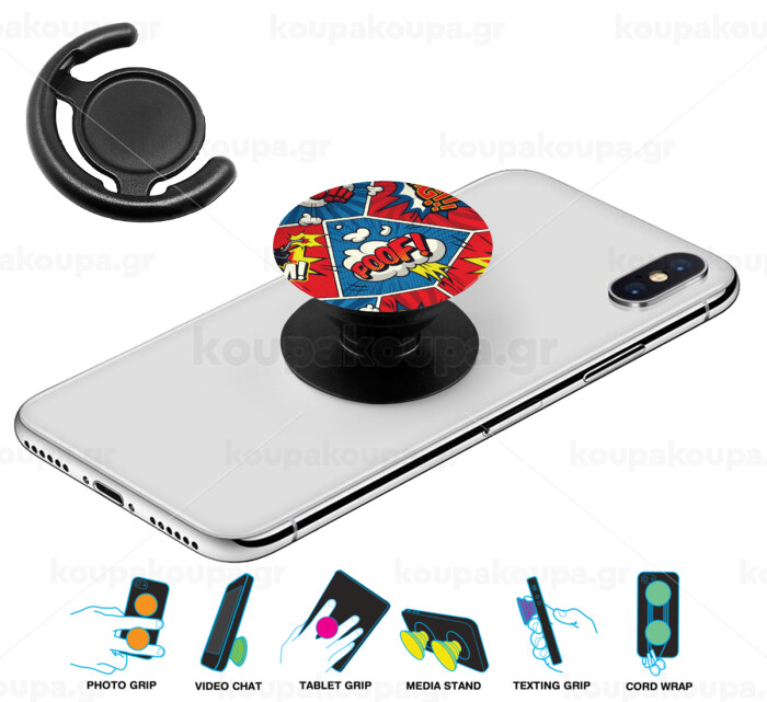 Comic boom!, Phone Holders Stand Black Hand-held Mobile Phone Holder
