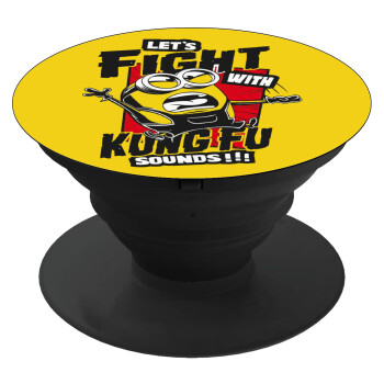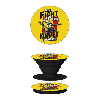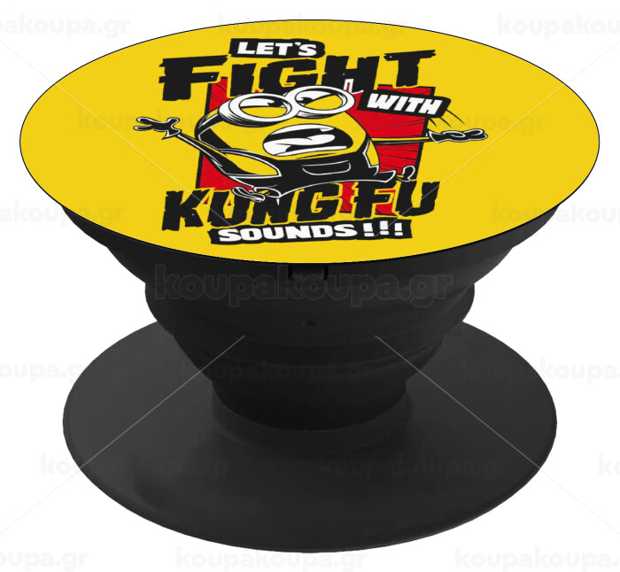 Minions Let's fight with kung fu sounds, Phone Holders Stand Black Hand-held Mobile Phone Holder