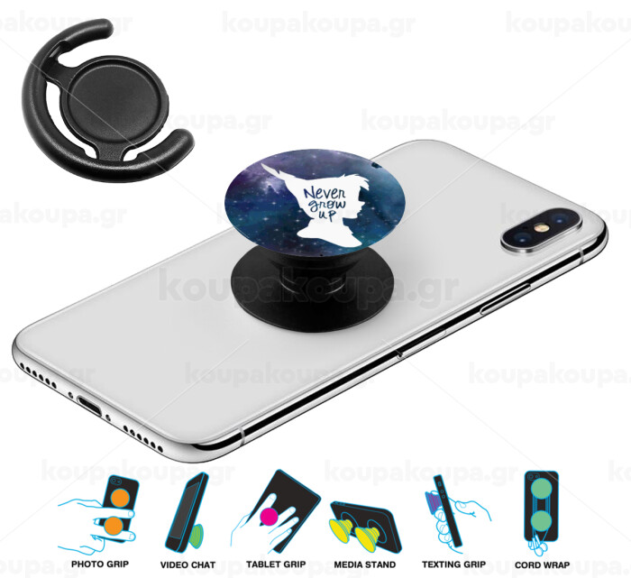 Never Grow UP, Phone Holders Stand Black Hand-held Mobile Phone Holder