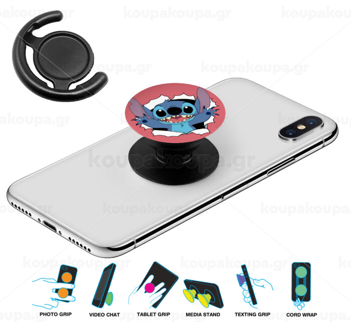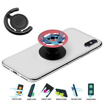 Stitch hello!!!, Phone Holders Stand Black Hand-held Mobile Phone Holder