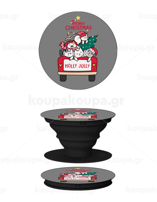 Merry Christmas cats in car, Phone Holders Stand Black Hand-held Mobile Phone Holder