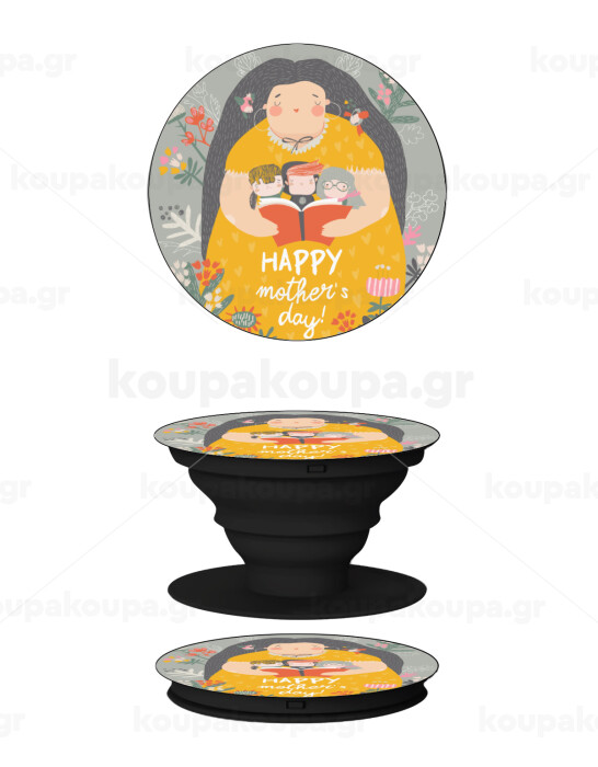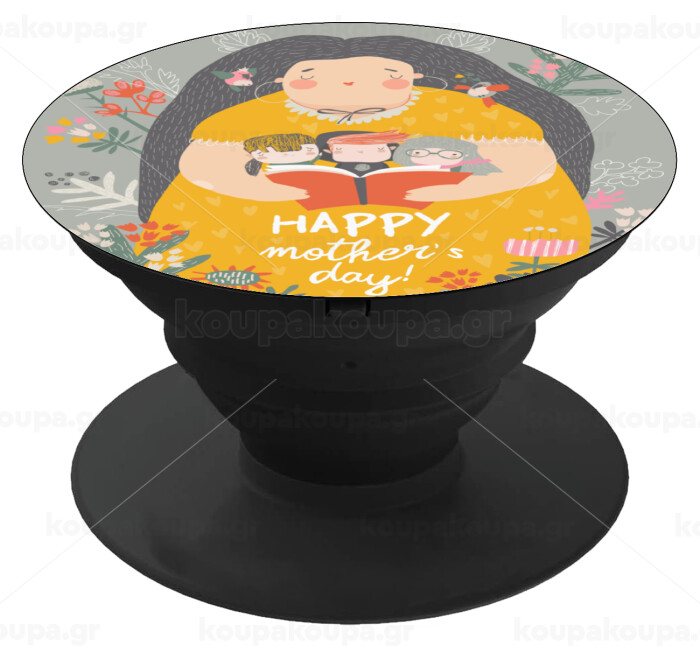 Cute mother reading book, happy mothers day, Phone Holders Stand Black Hand-held Mobile Phone Holder