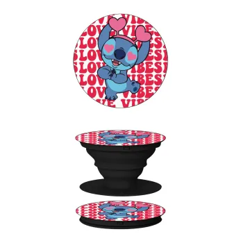 Lilo & Stitch Love vibes, Phone Holders Stand Black Hand-held Mobile Phone Holder