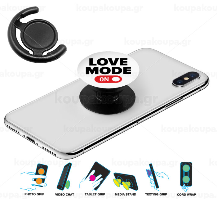 LOVE MODE ON, Phone Holders Stand Black Hand-held Mobile Phone Holder
